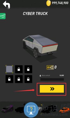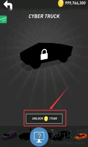 1、点击红框解锁按钮,花费17400金币购买CYBER TRUCK。