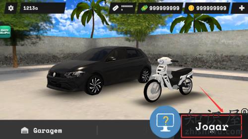3、在车库界面,点击红色箭头标记的Jogar按钮开始。