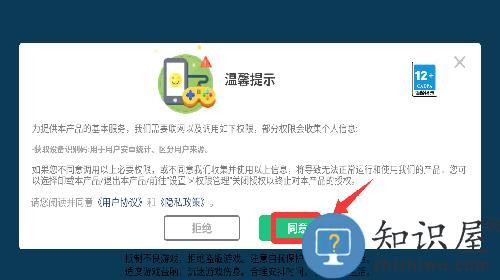 1、点击温馨提示里的同意并继续。