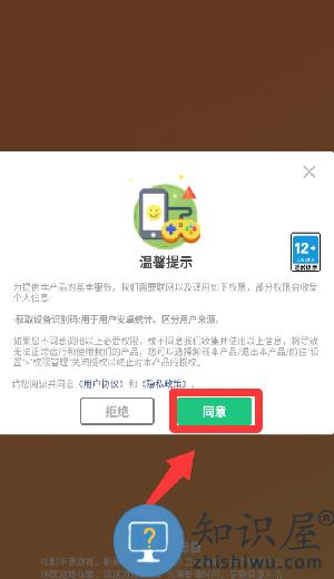 1、点击温馨提示里的同意并继续。