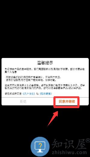 1、点击温馨提示里的同意并继续。