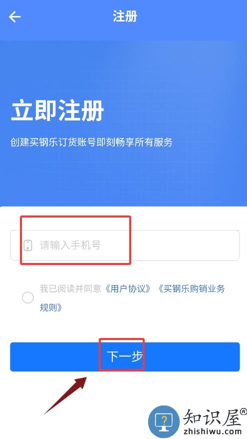 3、注册时需输入手机号,点击下一步获取并填写短信验证码。