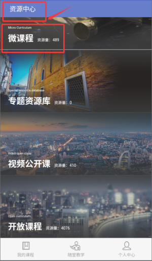 3、再进入资源中心页面,浏览微课程等学习资源。