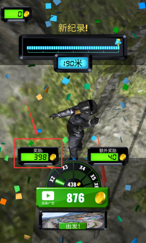 2、通过虚拟按钮驾驶摩托赛车进行特技;