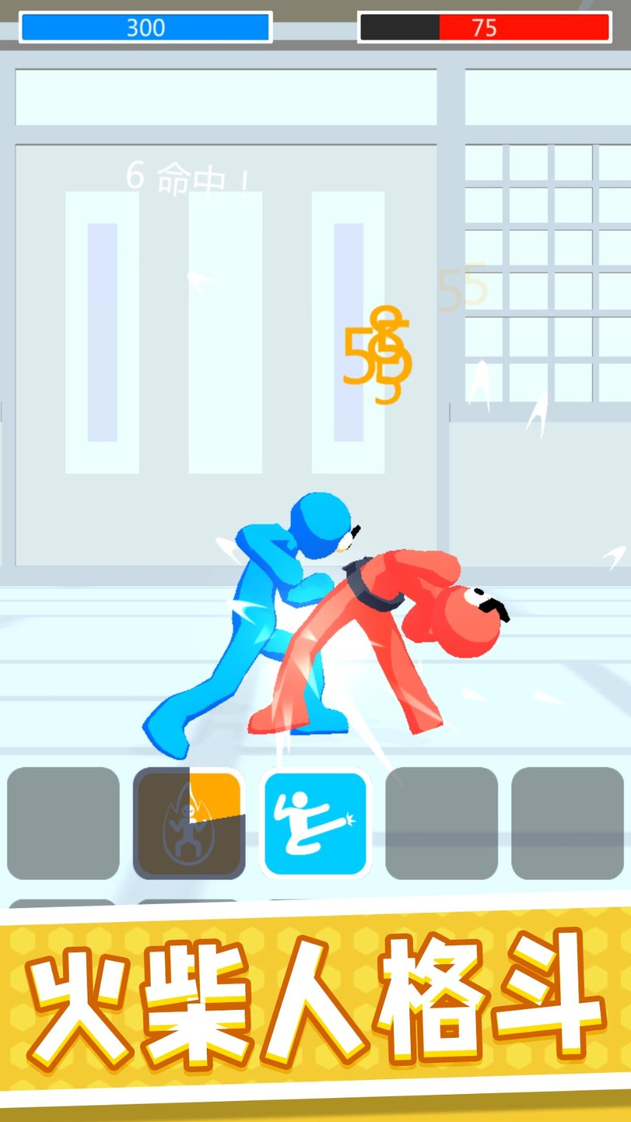1、玩家需操控火柴人角色与敌人展开一对一格斗对战,使用合理的招式组合即可轻松击败对手,操作设计简洁直观。