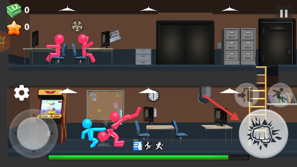 1、操控火柴人角色使用拳脚组合进行流畅的物理格斗对决。