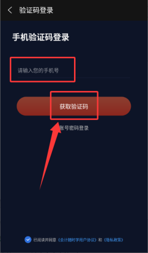 3、在界面中输入手机号获取验证码,后续输入完成登录。