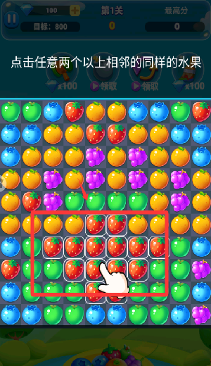 4、点击任意两个以上相邻的同样水果就可以消除。