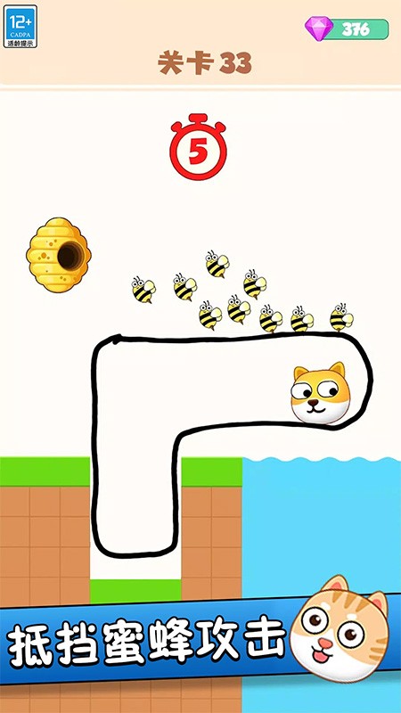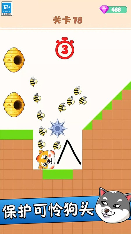 2、核心目标明确,只要确保蜜蜂无法接触狗头即算成功,操作仅需手指画线,简单直观易于上手。