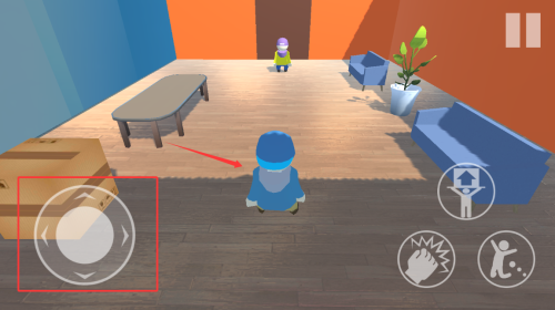 2、通过左下角虚拟摇杆控制角色移动。