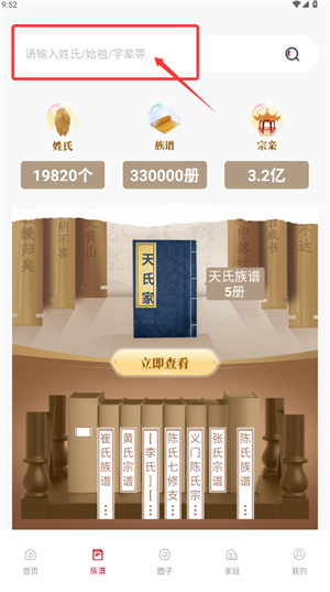 2、在搜索栏输入姓氏或字辈等关键词,检索关联的族谱信息。