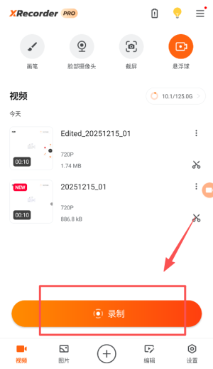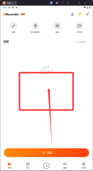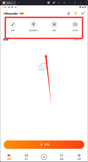 首先。打开xrecorder录屏大师最新版,来到软件首页,点击上方工具栏的第一个选项。如下图所示。