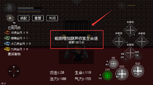 2、在修行界面,点击解锁丹药葫芦恢复效果。