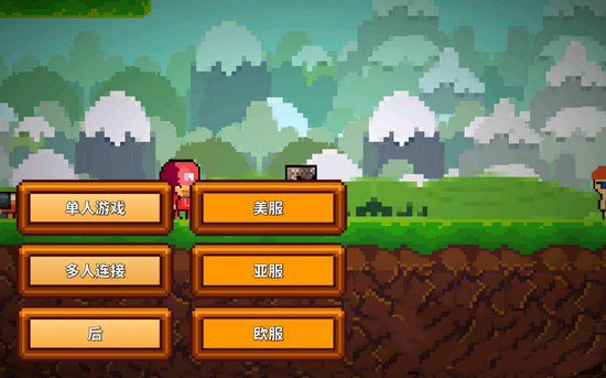 1、进入像素生存游戏2之后,我们选择“开始”,然后会出现单人游戏还是多人连接,点击“多人连接”按钮,就会出现美服、亚服、欧服,小编是选择亚服的,毕竟我们大华夏也是雄踞亚洲的。