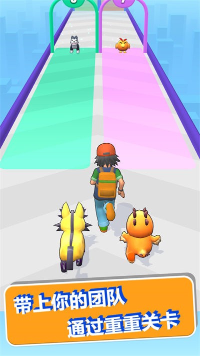 萌宠跑酷竞技赛是极具趣味性的跑酷冒险游戏,将酷酷的怪物萌宠聚集到你的团队中,逐渐扩大你的宠物队伍,在跑酷的途中和别的队伍进行对抗,玩起来十分的有意思。