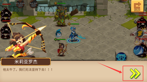 3、点击黄色箭头按钮,跳过当前对话剧情。