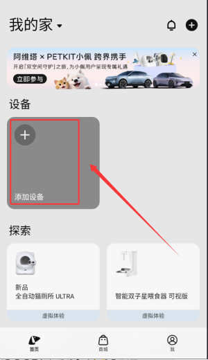 3、进入首页可添加宠物设备或使用喂食计算器等实用功能。