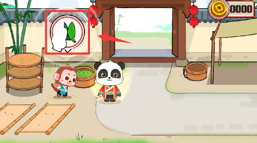 4、进入游戏点击红色框框里的叶子并制作茶叶。