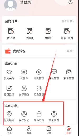 3、该页面还提供关注列表、优惠券、退款申请、评论管理及意见反馈功能。