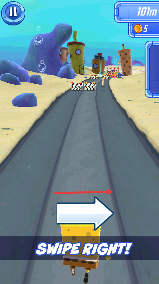 这一次的跑酷新作是根据海绵宝宝的电影版《海绵宝宝:离开了水的海绵宝宝》改编而成的,在游戏中玩家将扮演我们的主角海绵宝宝,