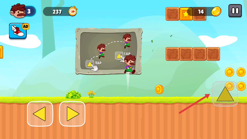 超级兄弟冒险是惊险和挑战性的冒险、这个游戏是一个伟大的运行和奇怪的跳跃游戏。只要跳起来保持尽可能多的硬币尽可能的时间限制,但要小心,在这个丛林里充满了怪物,他们会做一些事情来阻止英雄。在这个惊人的丛林世界中,与英雄一起跳跃和跑步。