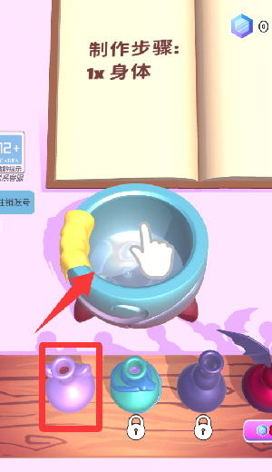 3、把是框框里的紫色药水倒进锅里。