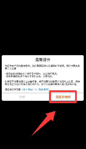 1、点击温馨提示里的同意并继续。