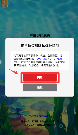1、点击用户协议和隐私保护指引里的同意并继续。
