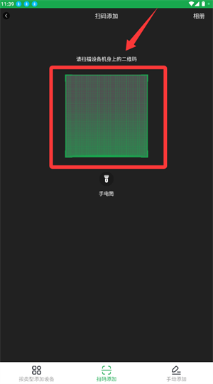 3、将设备机身的二维码对准扫描框,扫码即可完成添加。