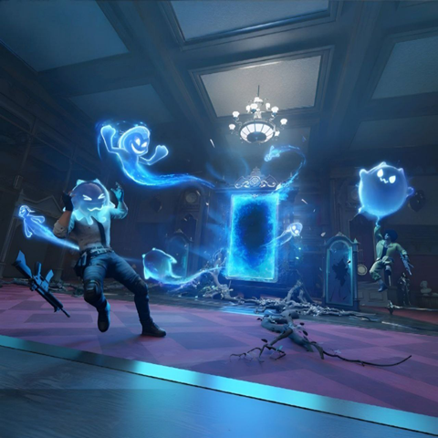 被动—幽灵头套:在原地待机过久,或头部受到攻击时,伙伴幽灵会飞到主人头上,变成头套。幽灵头套有少量生命值,可以为主人抵消头部受到的攻击。当主人处于头套状态中,开麦发出的声音会改变,且变得尖锐快速或低沉冗长。