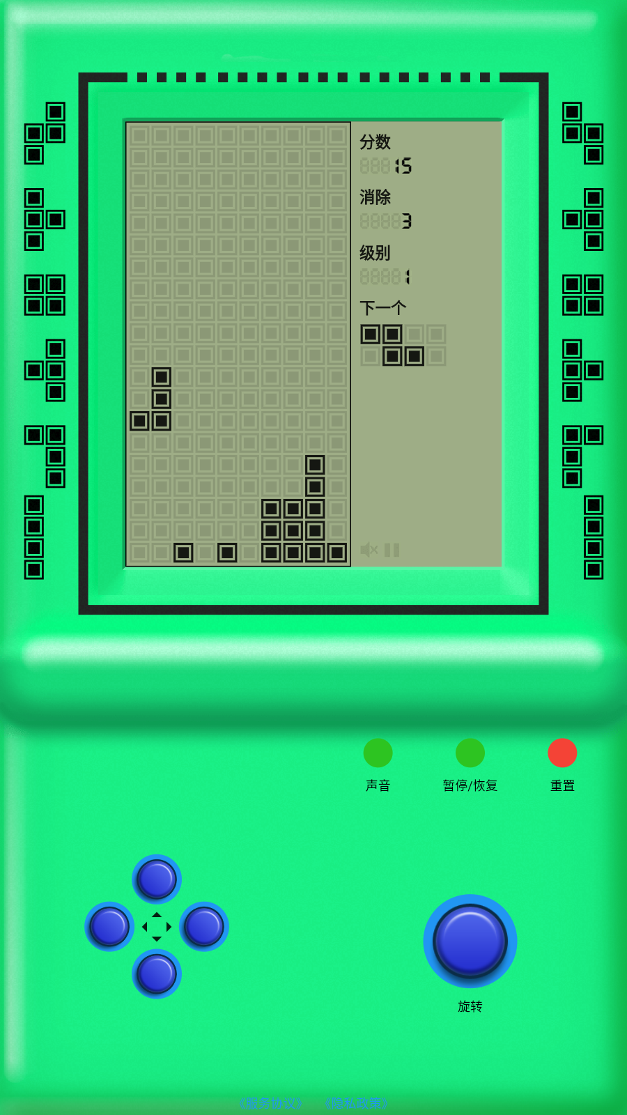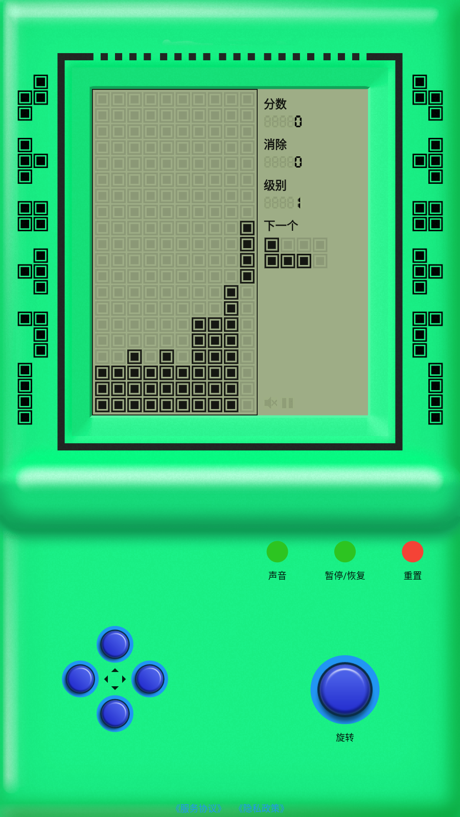 街机游戏厅,将经典俄罗斯方块装进你的口袋。启动游戏,一个复古的虚拟街机界面便跃然屏上,从屏幕边框到像素字体都充满怀旧细节。直接在这个模拟的游戏机界面上操作,控制下落的方块旋转与移动,完成线条消除。
