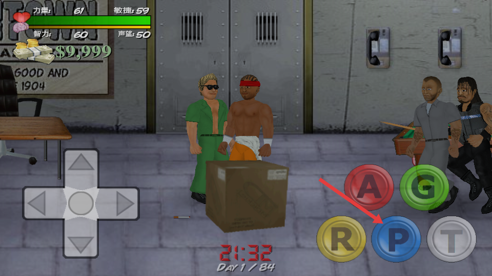 1、玩家利用方向触感键移动角色与监狱中的其他犯人进行扭打搏斗。