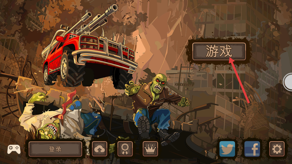 1、操控战车在横版关卡中前进,利用速度撞击或车载机枪消灭沿途的僵尸。