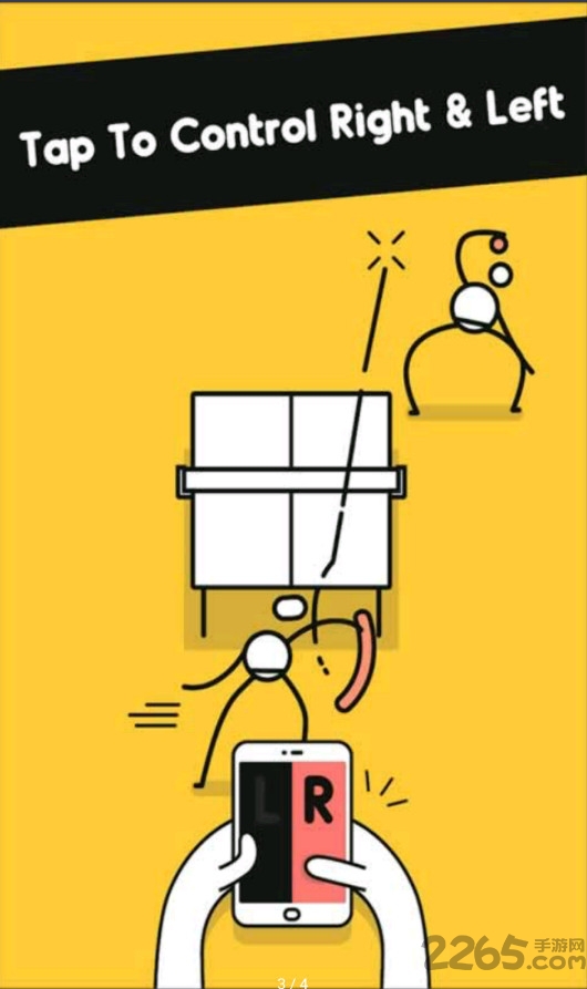 1、通过快速点击屏幕左侧或右侧,控制场上的火柴人角色左右移动。