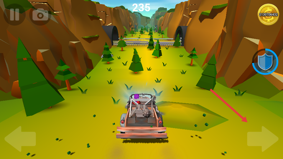 3.与其他跑酷游戏不同的是,在该作中玩家并不是控制人物进行跑动,而是控制一台失控的轿车,利用左右移动的方式,躲避一路上的树木、汽车以及火车等障碍。但万变不离其宗,依旧是躲闪障碍捡拾、道具等操作,另外游戏还设有收集系统,玩家可以使用获得的金币来购买外形更炫的汽车。