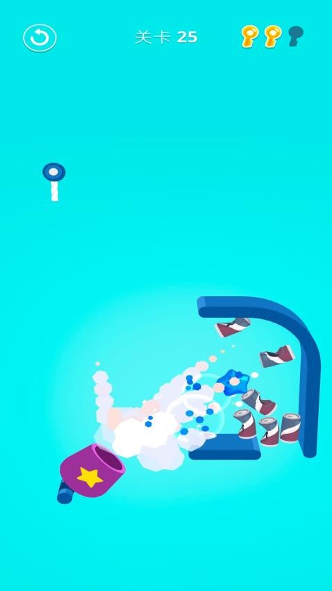 1、玩家需巧妙规划小球的初始下落路径,通过精准计算使其掉落后能准确击倒目标瓶子。