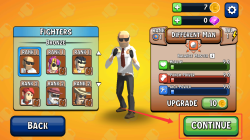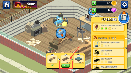 1、点击CONTINUE按钮,查看并升级你的藏身处。