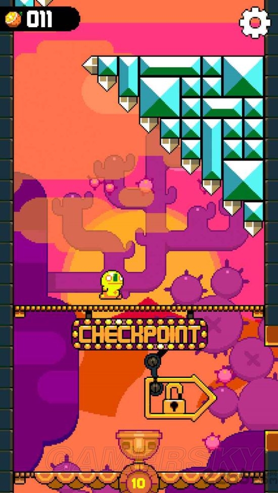 本作延续像素特色,而玩家所要做的就是让屏幕中这个不断来回奔跑的小人跳跃至关卡的最高处,也正因为如此游戏操作只有跳跃一项。当然越简单的才能体现出游戏的难度,守护森严的敌人,密密麻麻的机关,这些都能让小人一击毙命。不过途中玩家也能购买救命道具,游戏玩起来既简单又算不上特别虐心。