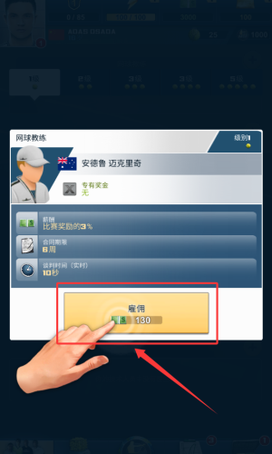 在你的网球生涯,你需要仔细聘请员工,并在其战术使用基于每个网球比赛的决定。坚持练习,让你的职业生涯首个王牌!