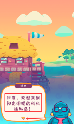 3、看堤奇的欢迎语并按红色箭头继续。