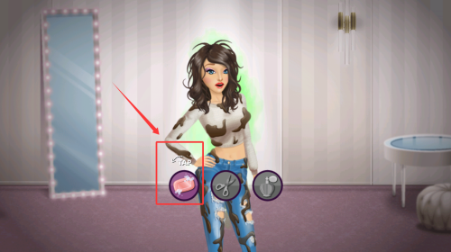 3、在角色裤子上点击TAP框进行裁缝操作。