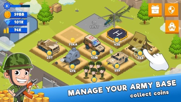 5.像大亨一样管理军队的基本游戏,成为一名将军从军队中获利,包括不断扩大军队的业务规模。