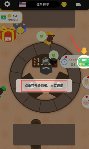 1、点击绿色UP按钮提升取餐出菜速度。