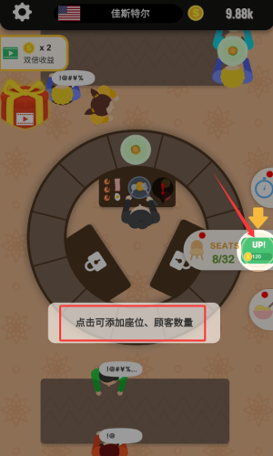 2、点击黄色UP按钮增加座位和顾客数量。