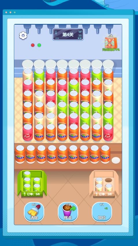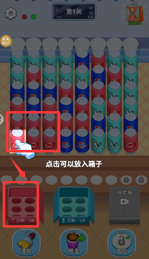 3、进入游戏点击6罐可乐进箱子完成订单。
