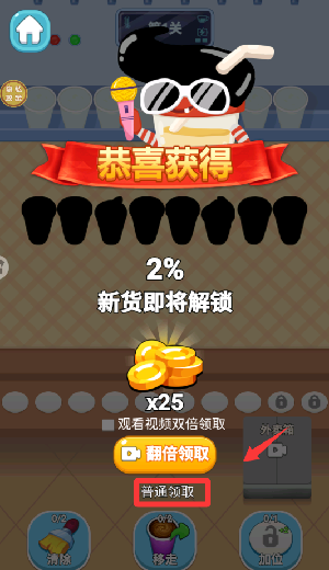 4、恭喜你过关了,点击普通领取并下一关。