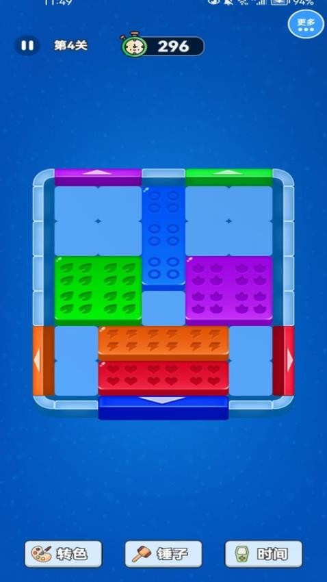 4、提供“颜色修改”与“锤子”两种关键道具,前者可临时改变一个方块的颜色以匹配缺口,后者能直接移除一个任意方块。