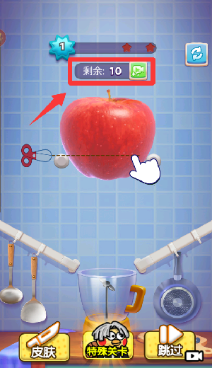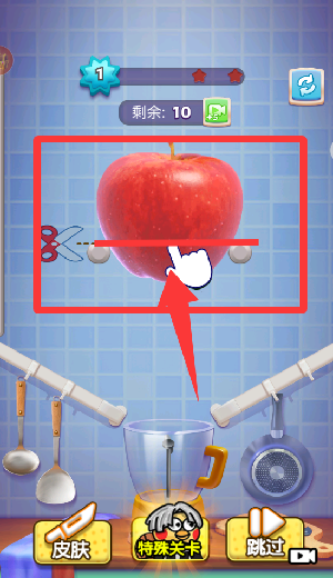 3、注意红色框框哪里只能切10刀把苹果切下去榨汁。