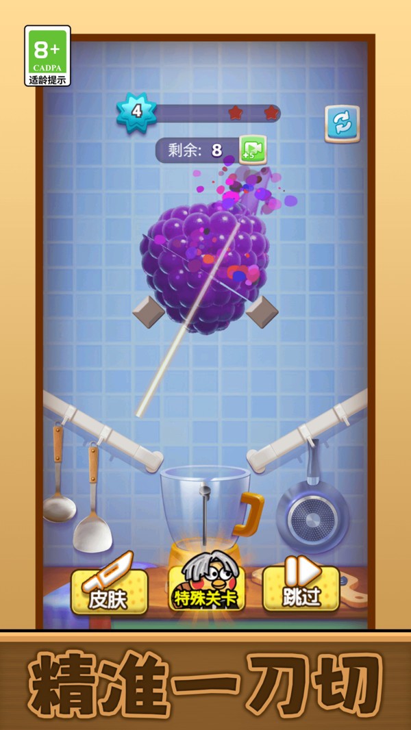 1、玩家掌握基础切割技巧后,可在关卡中灵活运用不同策略,例如调整下刀角度与顺序,从而将水果轻松切成符合要求的小块。
