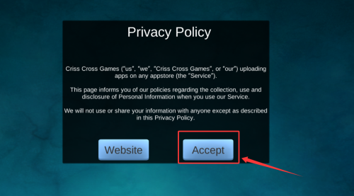 1、点击红色箭头所指的接受按钮确认隐私政策。